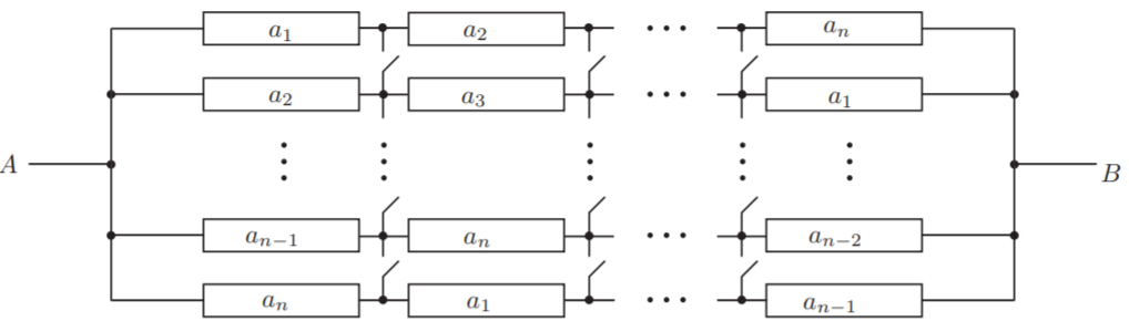 Θεωρούμε το παρακάτω κύκλωμα τεσσάρων αντιστατών (δυο με αντίσταση α και δυο με αντίσταση b):