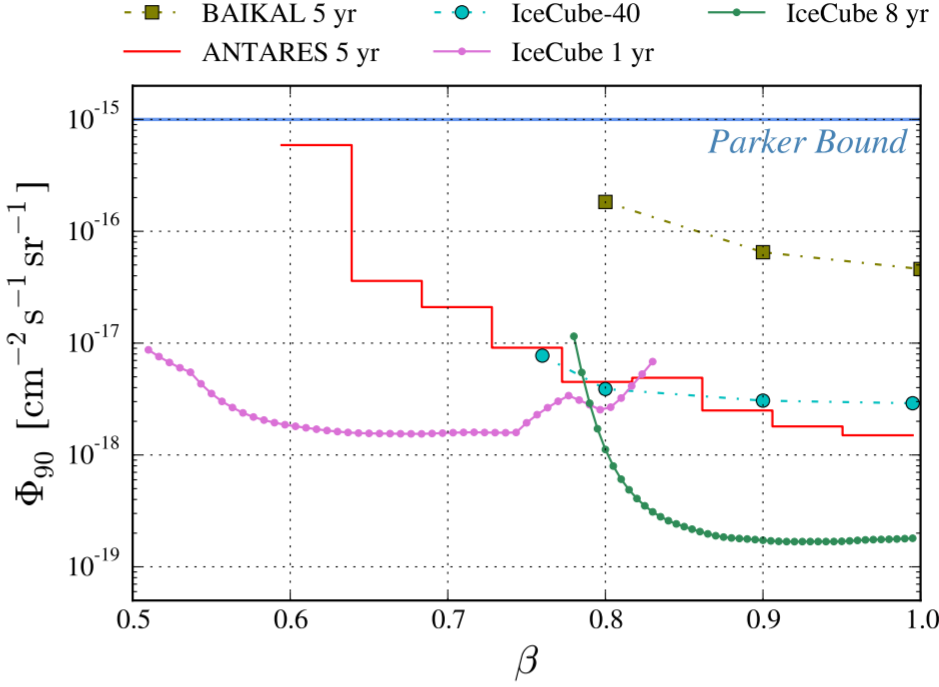 Για την αναζήτηση σημάτων που οφείλονται στα μαγνητικά μονόπολα αναπτύχθηκε μια ειδική μέθοδος εντοπισμού της ακτινοβολίας Cherenkov που έφερε τα χαρακτηριστικά μονοπόλων που κινούνταν σχεδόν με την ταχύτητα του φωτός. Δυστυχώς δεν βρέθηκαν σήματα μαγνητικών μονοπόλων στα δεδομένα που συνέλεξε ο ανιχνευτής IceCube μέσα 2886 ημέρες λειτουργίας. Όμως, έθεσαν ένα νέο, αυστηρότερο ανώτερο όριο στην πιθανή ροή των μαγνητικών μονοπόλων.