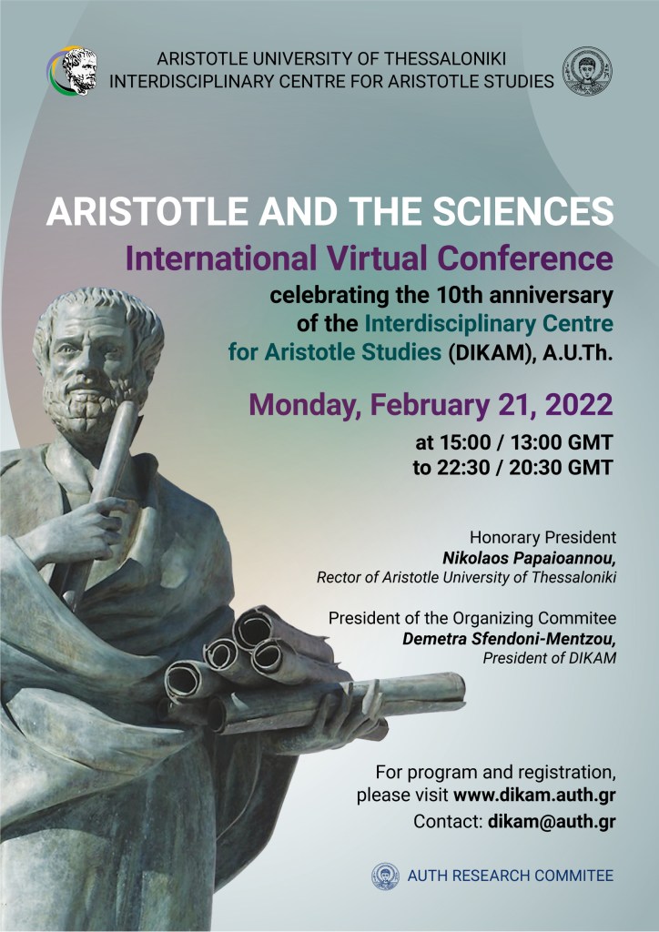 Διεθνές διαδικτυακό συνέδριο στις 21 Φεβρουαρίου – Κορυφαίοι αριστοτελιστές φιλόσοφοι και επιστήμονες, τόσο από την Ελλάδα όσο και από το εξωτερικό, θα αναλύσουν την επίδραση του μεγάλου φιλοσόφου στη σύγχρονη επιστήμη.