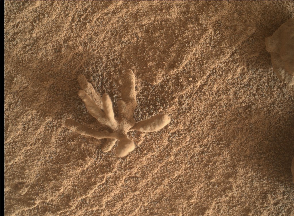 Το διαστημικό όχημα Curiosity της NASA φωτογράφισε έναν περίεργο σχηματισμό ορυκτών στο έδαφος του Άρη που μοιάζει με απολιθωμένο φυτό. Η φωτογραφία λήφθηκε στις 24 Φεβρουαρίου 2022, χρησιμοποιώντας την κάμερα MAHLI (Mars Hand Lens Imager), η οποία βρίσκεται στο άκρο του κινούμενου βραχίονα του Curiosity. Υπενθυμίζεται ότι η ‘Περιέργεια’ εξερευνά την επιφάνεια του πλανήτη Άρη από τον Αύγουστο του 2012!