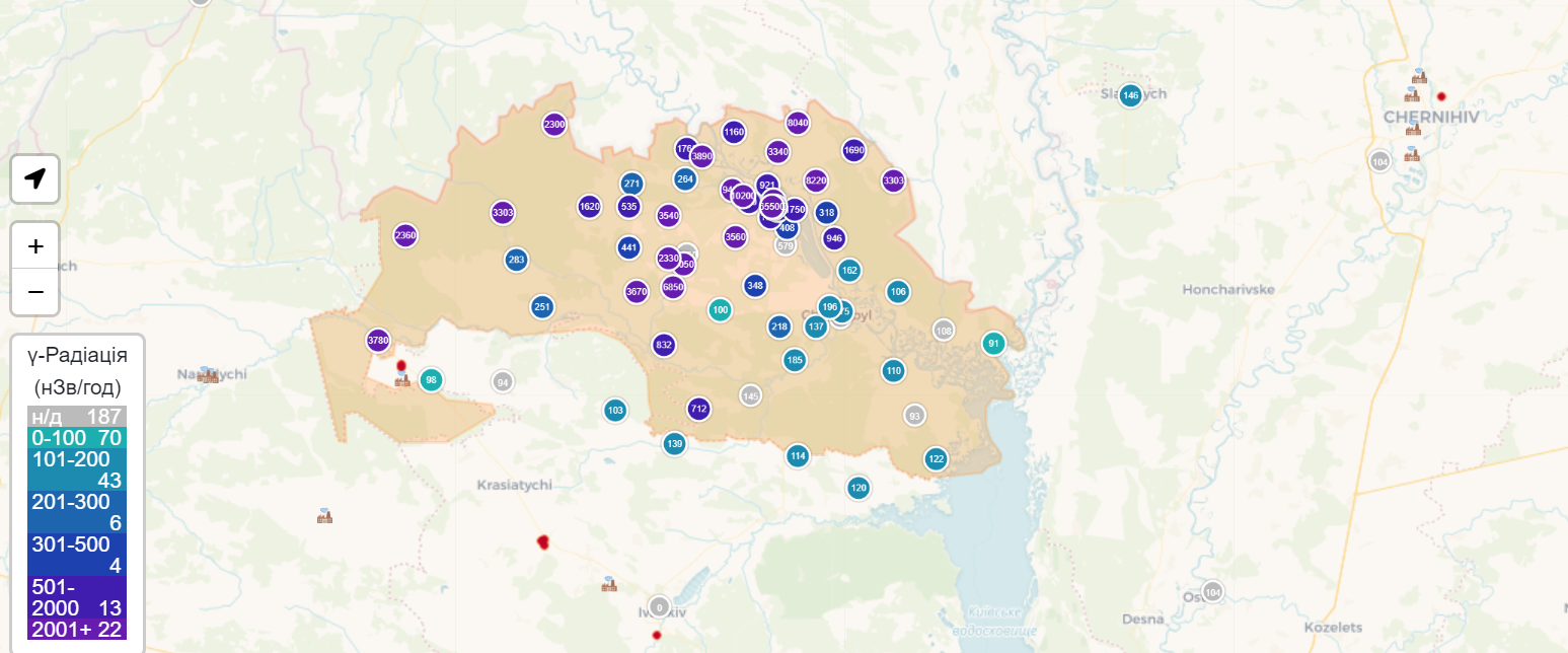 Τα ρωσικά στρατεύματα έχουν καταλάβει τον πυρηνικό σταθμό του Τσερνομπίλ, ο οποίος εξακολουθεί να περιέχει πυρηνικά απόβλητα που θα μπορούσαν να αποτελέσουν απειλή για τη γύρω περιοχή και όχι μόνο. Εκφράζονται φόβοι ότι η στρατιωτική δραστηριότητα θα μπορούσε να προκαλέσει εξάπλωση ραδιενεργού υλικού. Άλλωστε τα ισότοπα στροντίου και καισίου έχουν αρκετά μεγάλο χρόνο ημιζωής ώστε να παραμένουν ακόμη στην περιοχή, μετά από το πυρηνικό ατύχημα του 1986.