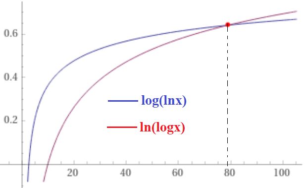 Στην εξίσωση log(lnx)=ln(logx) με log συμβολίζεται ο λογάριθμος με βάση το 10, ενώ με ln ο λογάριθμος με βάση το e. Η λύση είναι: