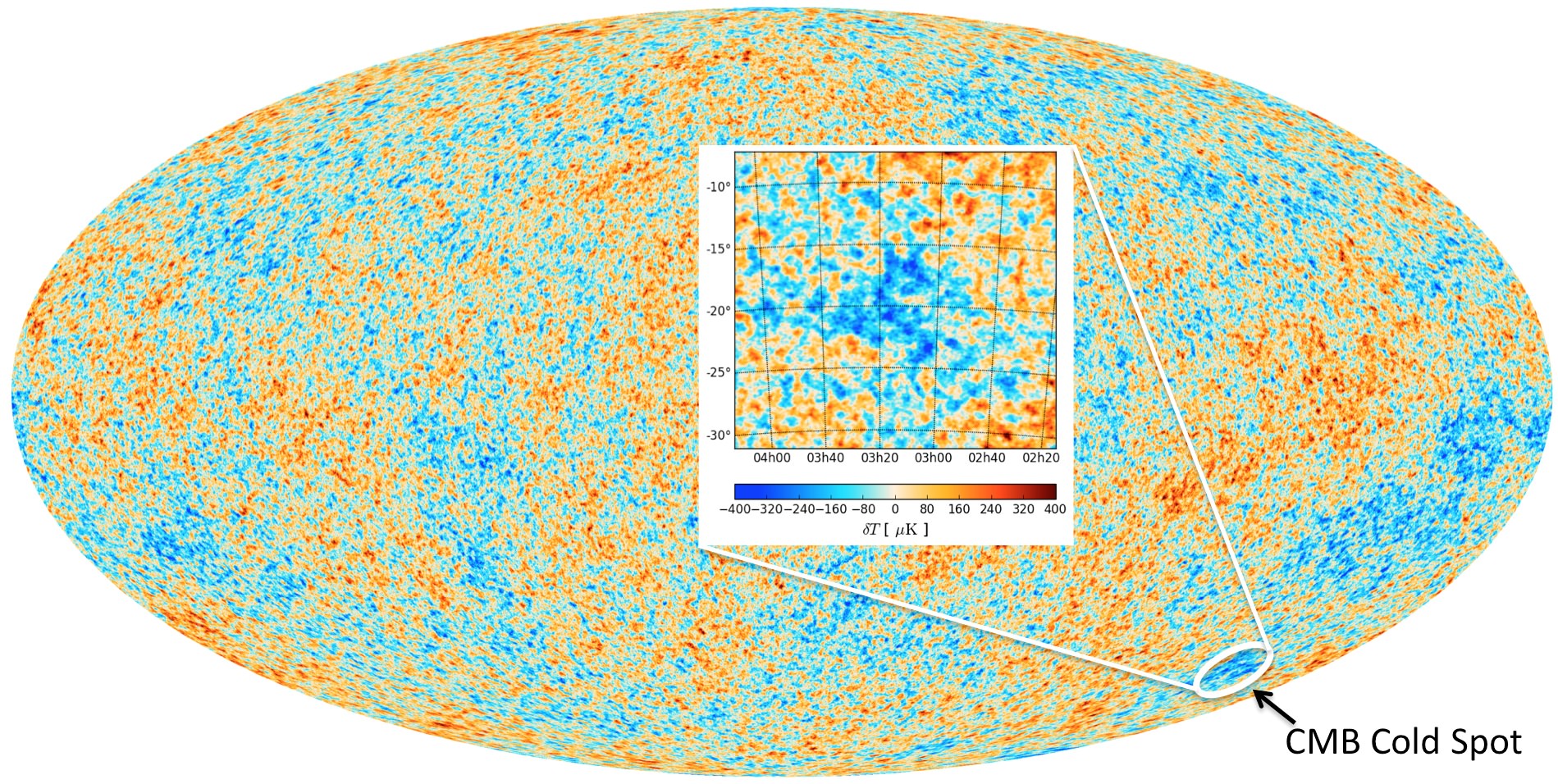 H μελέτη της κοσμικής μικροκυματικής ακτινοβολίας υποβάθρου που αποτελεί έναν θησαυρό πληροφοριών για το σύμπαν μας αποκάλυψε και κάποια άλυτα προς το παρόν μυστήρια, όπως μια μεγάλη περιοχή του ουρανού που φαίνεται πολύ πιο ψυχρή, απ’ όσο θα έπρεπε. Βρίσκεται στον αστερισμό του Ηριδανού στο νότιο ημισφαίριο, έχει πλάτος περίπου 5 μοιρών (όσο δέκα πανσέληνοι) και είναι οκτώ φορές ψυχρότερη από την μέση διαφορά θερμοκρασίας στην κοσμική ακτινοβολία υποβάθρου. Αναφέρεται ως ψυχρή κηλίδα και γίνονται διάφορες εικασίες ώστε να εξηγηθεί η προέλευσή της.