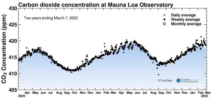 Η εξέλιξη της περιεκτικότητας του διοξειδίου του άνθρακα στην ατμόσφαιρα με το πέρασμα των αιώνων