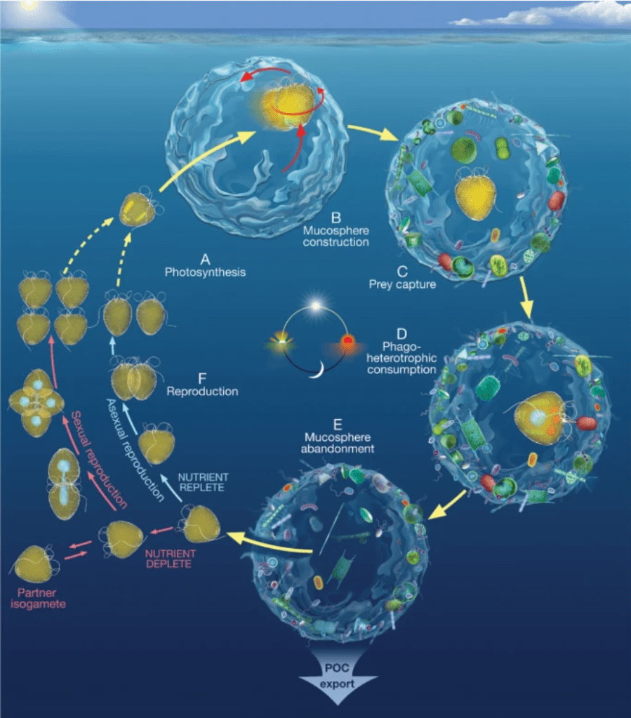 Μια τέτοια πρόταση θα μπορούσε να προκύψει από την πρόσφατη δημοσίευση των Larsson et al με τίτλο ‘Mucospheres produced by a mixotrophic protist impact ocean carbon cycling‘. Σχετίζεται με ένα μονοκύτταρο θαλάσσιο μικρόβιο ικανό να συλλαμβάνει άνθρακα με φυσικό τρόπο, ακόμη και όταν οι ωκεανοί θερμαίνονται και γίνονται πιο όξινοι.