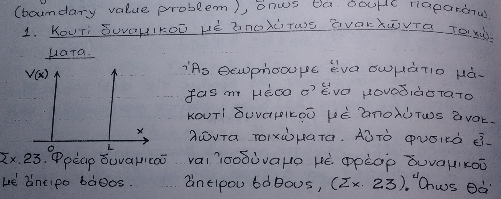 Έτσι, το απλούστερο κβαντομηχανικό πρόβλημα που συναντούσαν οι φοιτητές στο Πανεπιστήμιο περνάει στην διδακτέα ύλη του Λυκείου. Ποιό είναι λοιπόν αυτό το πρόβλημα;
