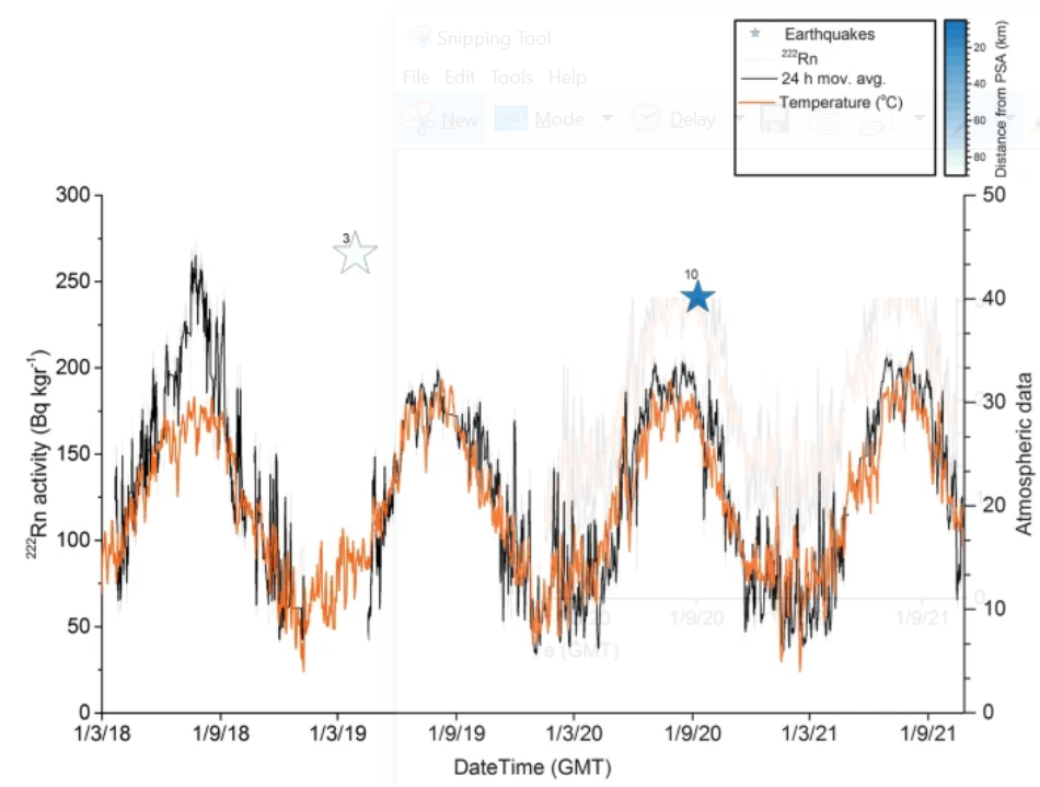 Οι ερευνητές προτείνουν ότι οι μεταβολές της εδαφικής συγκέντρωσης ραδονίου ακολουθούν ένα συγκεκριμένο χαρακτηριστικό μοτίβο, που ακολουθεί την μεταβολή της συγκέντρωσης των τεκτονικών τάσεων σε μια περιοχή. Η μελέτη εξηγεί σε μεγάλο βαθμό, μέσω ενός προτεινόμενου μοντέλου βαθιάς υδρογεωλογίας, την προνομιακή καταγραφή σε γεωθερμικές θέσεις, αλλά και τη συσχέτιση με αποτελέσματα εργαστηριακών πειραμάτων.