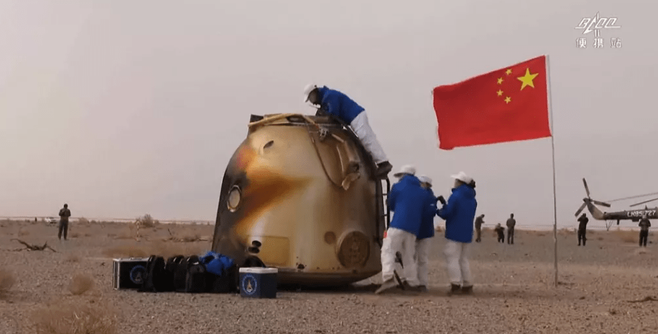 Οι τρεις αστροναύτες της αποστολής Shenzou-13 επέστρεψαν σήμερα στη Γη, ύστερα από έξι μήνες στον κινεζικό διαστημικό σταθμό, καταρρίπτοντας το ρεκόρ παραμονής στο διάστημα για την Κίνα, όπως μετέδωσε η δημόσια τηλεόραση CCTV (στη φωτογραφία, επάνω, οι αστροναύτες στη διαστημική κάψουλα κατά την επιστροφή τους στη γη).