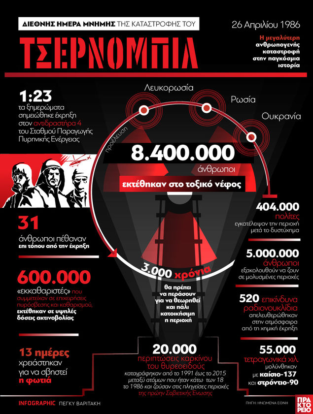 Πυρηνικός σταθμός Τσερνόμπιλ, 26 Απριλίου 1986: Η ρουτίνα τερματισμού λειτουργίας του συστήματος 20 δευτερολέπτων φάνηκε να είναι μια άλλη δοκιμή του ηλεκτρικού εξοπλισμού. Αλλά επτά δευτερόλεπτα αργότερα, ένα κύμα δημιούργησε μια χημική έκρηξη που απελευθέρωσε περίπου 520 επικίνδυνα ραδιονουκλεΐδια στην ατμόσφαιρα. Η δύναμη της έκρηξης εξάπλωσε τη μόλυνση σε μεγάλα τμήματα της Σοβιετικής Ένωσης, τα σημερινά εδάφη της Λευκορωσίας, της Ουκρανίας και της Ρωσίας.