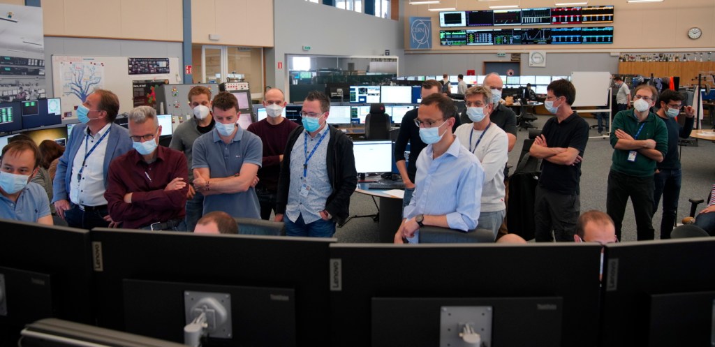 Είναι ο διευθυντής του προγράμματος που λέει τις μαγικές αυτές λέξεις, είναι το τελευταίο μπλοκ απορρόφησης που αποσύρεται από την 27 χιλιομέτρων κυκλική τροχιά αφήνοντάς την ελεύθερη, είναι η πρώτη δέσμη πρωτονίων που ξεκινώντας αφήνει μια φωτεινή κηλίδα στις οθόνες, τις μέσα στην αίθουσα και στο αμφιθέατρο έξω από αυτήν. Είναι η άφιξή της, αφού έκανε τον γύρο της εγκατάστασης, που ύστερα από ενενήντα εκατομμυριοστά του δευτερολέπτου δίνει άλλη μια ίδια φωτεινή κηλίδα στις οθόνες. Ακριβώς δίπλα στην πρώτη. Τέλος στην ένταση, χειροκροτήματα.