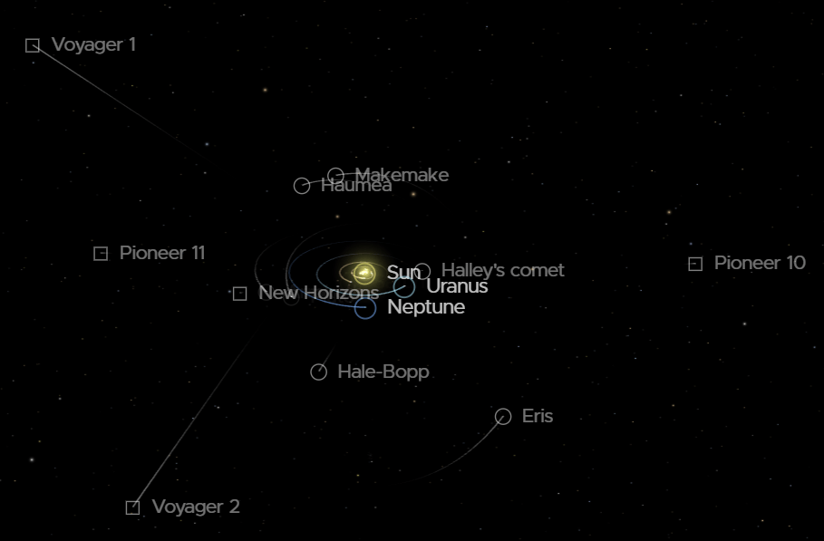 Απέχοντας 23,3 δισεκατομμύρια χιλιόμετρα από τη Γη, το διαστημικό σκάφος Voyager 1 συνεχίζει την εξερεύνηση του διαστρικoύ διαστήματος 45 χρόνια (!) μετά την εκτόξευσή του. Για να διανύσει το φως αυτή την απόσταση χρειάζεται περίπου 22 ώρες. Που σημαίνει ότι χρειάζονται περίπου δύο ημέρες για να στείλουμε ένα μήνυμα στο Voyager 1 και να πάρουμε απάντηση.