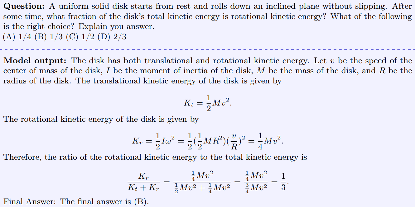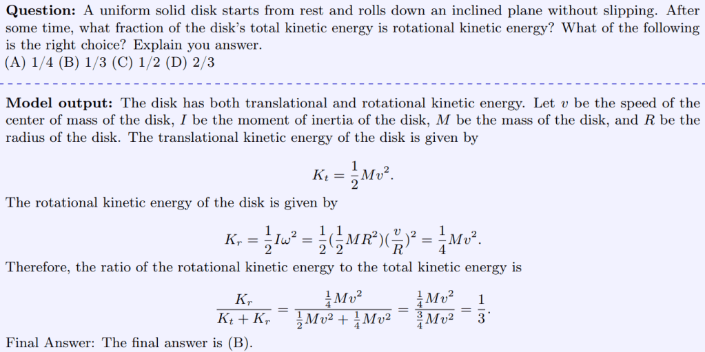 «Ένας ομογενής δίσκος ξεκινώντας από την ηρεμία, κυλίεται χωρίς να ολισθαίνει σε κεκλιμένο επίπεδο. Μετά από κάποιο χρονικό διάστημα, ποιο κλάσμα της συνολικής κινητικής ενέργειας του δίσκου είναι περιστροφική κινητική ενέργεια;