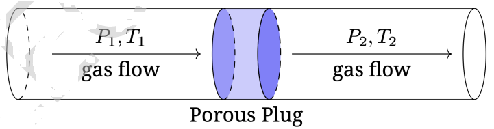 Αέριο ήλιο που παροχετεύεται από αριστερά όπου επικρατεί καλά καθορισμένη πίεση 𝑃1 και θερμοκρασία 𝑇1 εξαναγκάζεται να διέλθει μέσω του πορώδους πώματος (σπόγγος) προς περιοχής καλά καθορισμένης πίεσης 𝑃2 και θερμοκρασίας 𝑇2, από όπου απομακρύνεται κινούμενο προς τα δεξιά.
