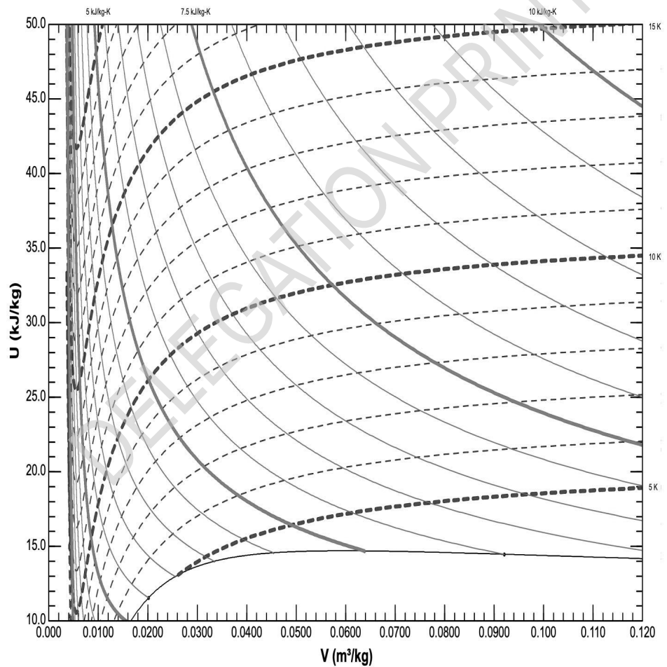 Στο Φύλλο Απαντήσεων υπάρχουν γραφικές παραστάσεις της εσωτερικής ενέργειας ανά μονάδα μάζας σε σχέση με τον όγκο ανά μονάδα μάζας για το ήλιο, με καμπύλες ισόθερμης μεταβολής και γραμμές σταθερής εντροπίας.