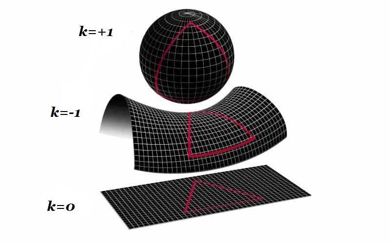 Η τιμή k=0 αντιστοιχεί στην μετρική του επίπεδου ευκλείδειου χώρου, η οποία περιγράφει το επίπεδο σύμπαν (τότε προκύπτει ρ=ρc , οπότε το σύμπαν θα συνεχίσει να διαστέλλεται επ’ άπειρο, αλλά ο ρυθμός διαστολής του θα τείνει στο μηδέν)