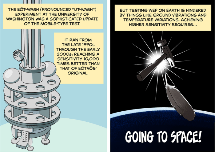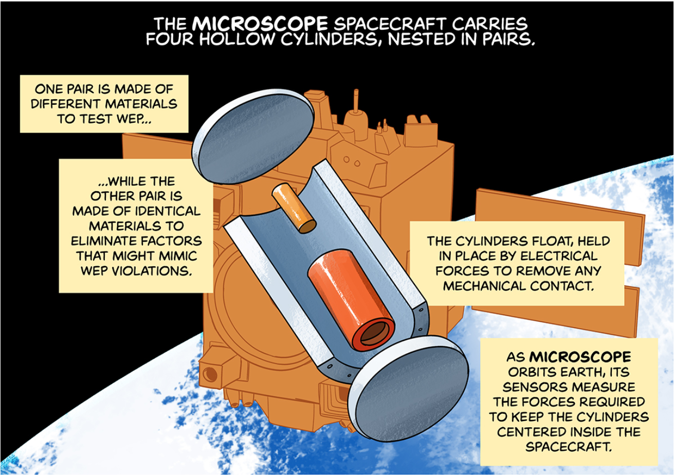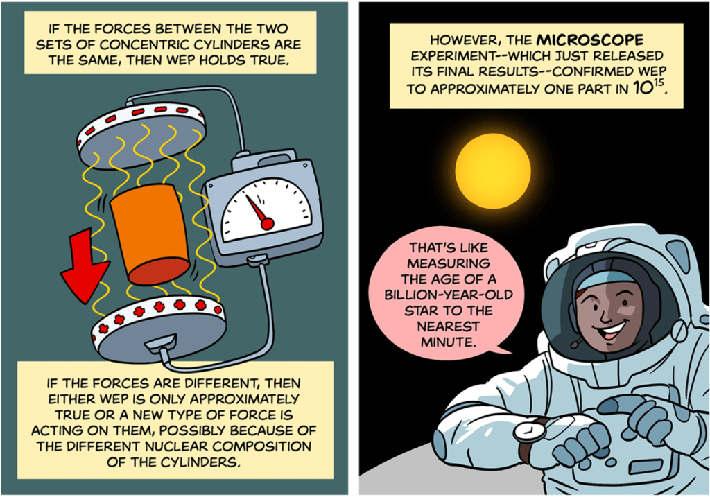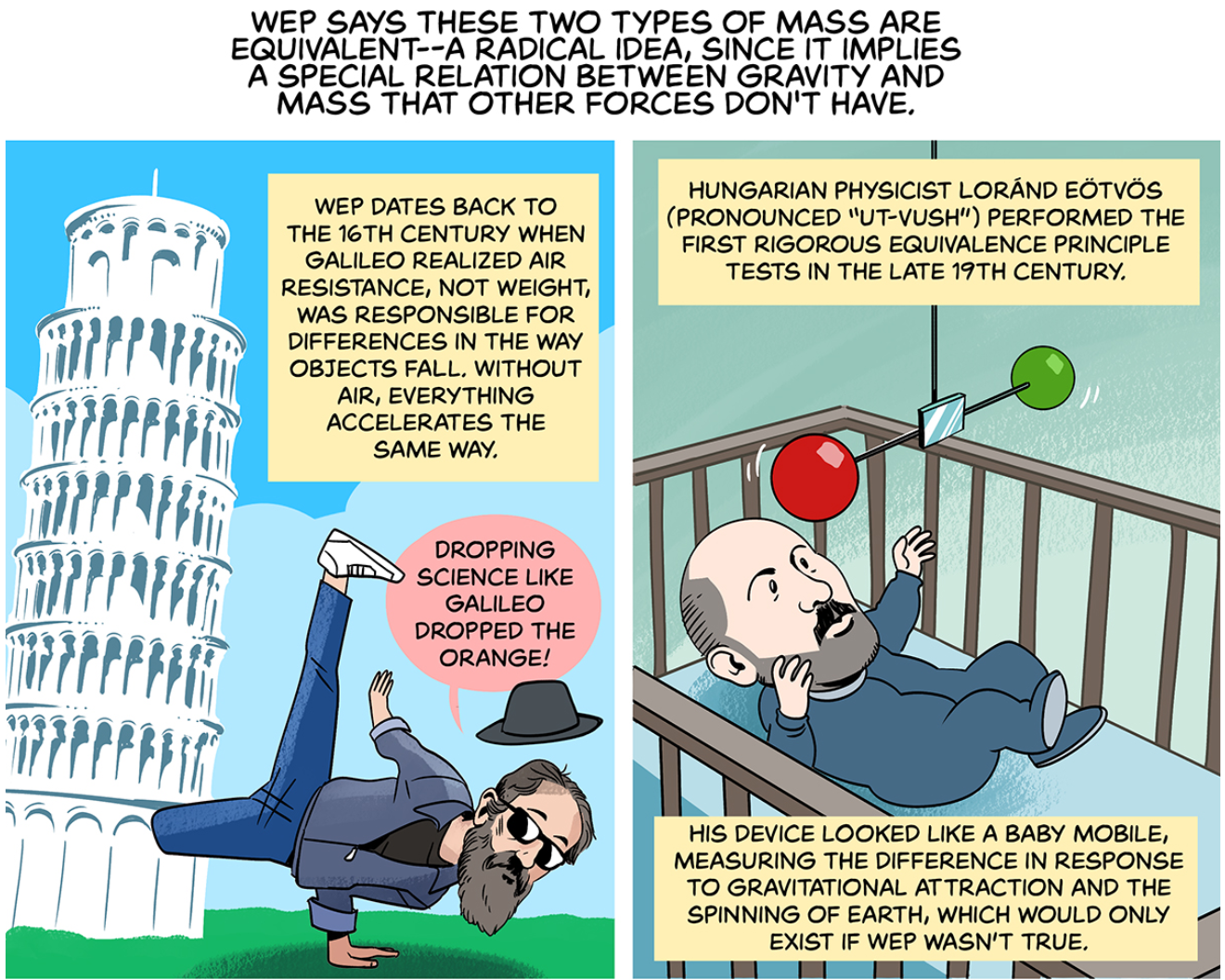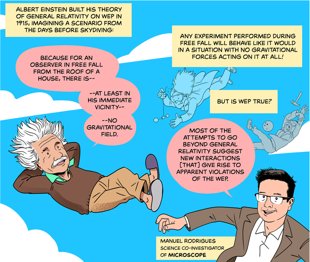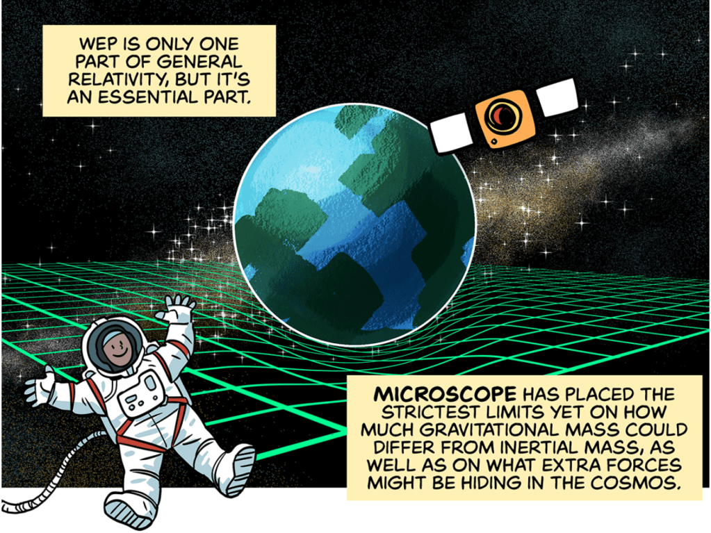 Πρόκειται για τον τίτλο ενός κόμικ που περιγράφει τα αποτελέσματα της δορυφορικής αποστολής MicroSCOPE, η οποία διερεύνησε την ασθενή αρχή της ισοδυναμίας, επιβεβαιώνοντας με εκπληκτική ακρίβεια την ισότητα αδρανειακής και βαρυτικής μάζας: