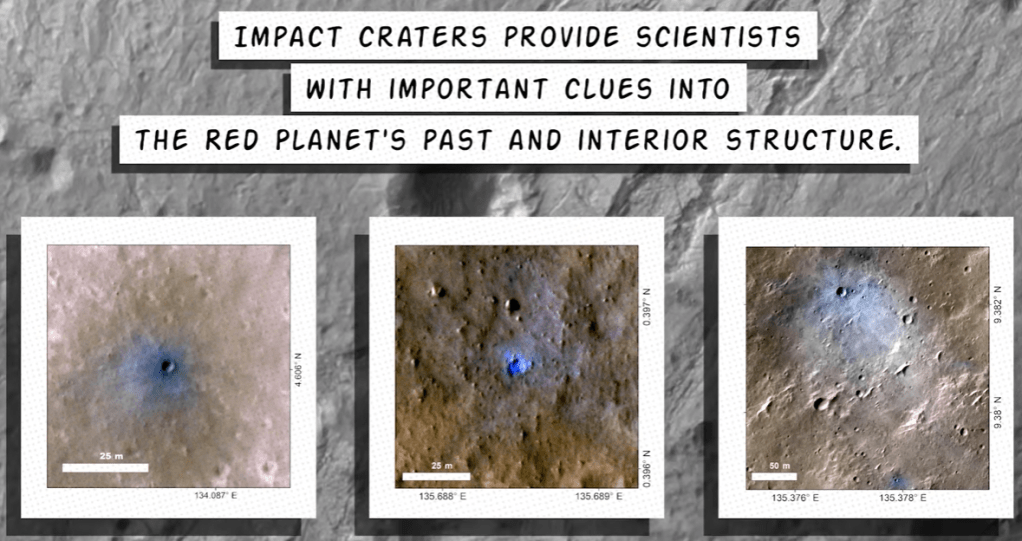 Εν τω μεταξύ, το Mars Reconnaissance Orbiter της NASA που περιφέρεται γύρω από τον Άρη, εντόπισε τα σημεία πρόσκρουσης και τα φωτογράφισε:
