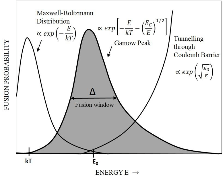 H συνάρτηση που περιέχεται στο ολοκλήρωμα είναι το γινόμενο της κατανομής Maxwell-Boltzmann και του συντελεστή διείσδυσης στο δυναμικό Coulomb. Μια ωραία μαθηματική εξάσκηση είναι να δείξουμε ότι η συνάρτηση αυτή έχει μέγιστη τιμή στην ενέργεια: