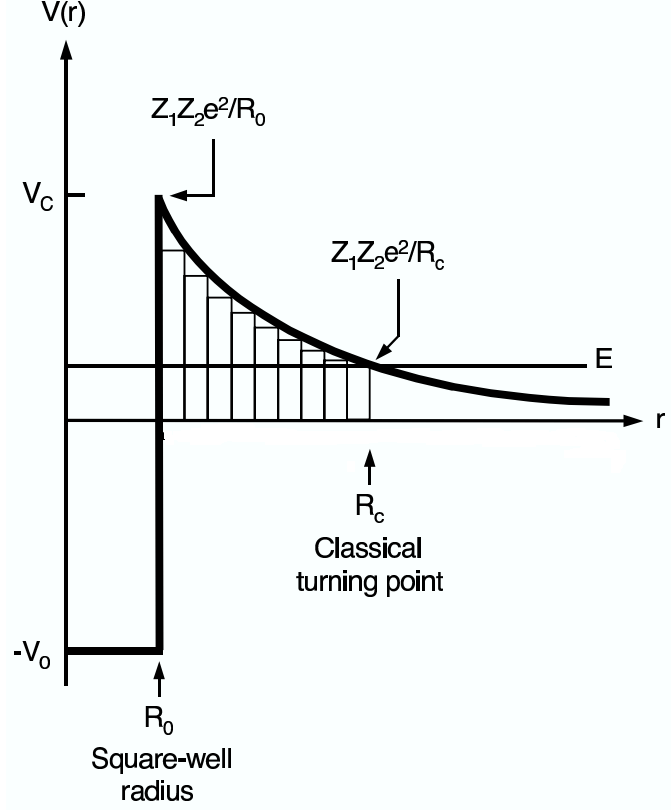 Η πιθανότητα διέλευσης μπορεί να υπολογιστεί αν χψρίσουμε το φράγμα ύψους VC = Z1Z2e2/R0 σε μικρά τετραγωνικά φράγματα δυναμικού, η πιθανότητα διέλευσης των οποίων υπολογίζεται «ευκολότερα».