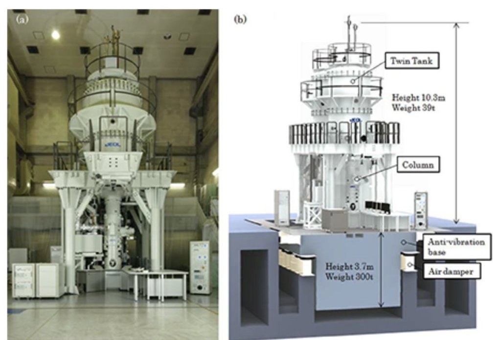 Τα ηλεκτρονικά μικροσκόπια χρησιμοποιούν υψηλή τάση για να επιταχύνουν τα ηλεκτρόνια, επιτυγχάνοντας έτσι τα ζητούμενα μικρά μήκη κύματος. To γεγονός ότι μικρότερο μήκος κύματος αντιστοιχεί σε υψηλότερη τάση, έχει ως αποτέλεσμα, τα ηλεκτρονικά μικροσκόπια εξαιρετικά υψηλής τάσης να είναι τεράστια:
