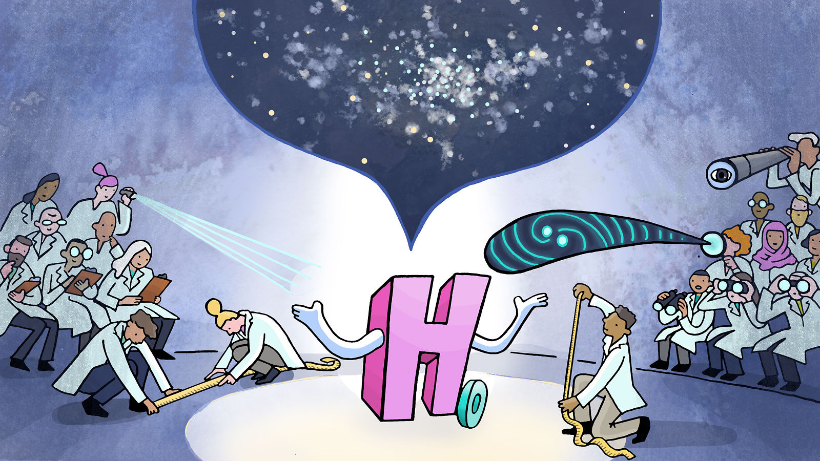 Οι ερευνητές της ομάδας Pantheon+, με επικεφαλής τον Ντίλον Μπρουτ, οι οποίοι έκαναν τη σχετική δημοσίευση στο περιοδικό αστροφυσικής «The Astrophysical Journal», βάσισαν τις νέες εκτιμήσεις τους στην ανάλυση άνω των 1.500 αστρικών εκρήξεων υπερκαινοφανών αστέρων (σουπερνόβα τύπου Ia). Αυτές οι φωτεινές εκρήξεις ξεπερνούν σε λάμψη ολόκληρους γαλαξίες και μπορούν να παρατηρηθούν σε χωροχρονικές αποστάσεις άνω των 10 δισ. ετών φωτός.