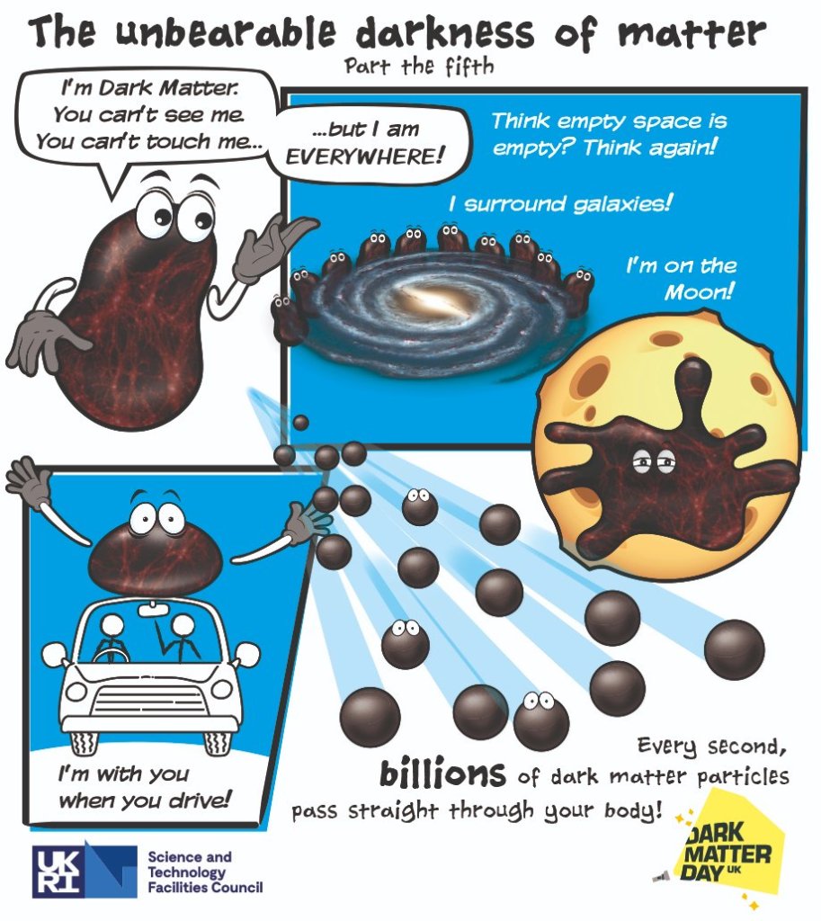 Παρά το γεγονός ότι δεν έχει ομοιόμορφη κατανομή, η Σκοτεινή Ύλη εξακολουθεί να υπάρχει παντού. Ίσως την επόμενη φορά που θα είστε στο αυτοκίνητό σας ή θα περπατάτε κάπου, ελέγξτε ξανά μήπως … έχει γλιστρήσει στο πίσω κάθισμα ή στην τσέπη σας!