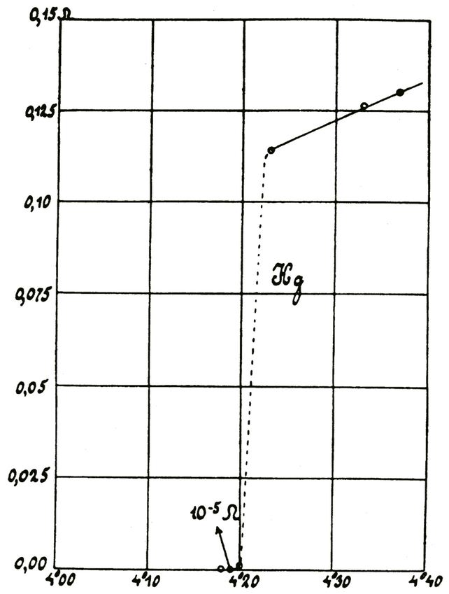 Το 1911, ο Kamerlingh Onnes χρησιμοποίησε υγρό ήλιο – ήταν ο πρώτος που κατάφερε να το υγροποιήσει – για να ψύξει τον υδράργυρο σε θερμοκρασία μερικούς βαθμούς πάνω από το απόλυτο μηδέν (TC=4 Κ). Έτσι, ανακάλυψε ότι σ’ αυτή τη θερμοκρασία η ηλεκτρική του αντίσταση μηδενιζόταν: