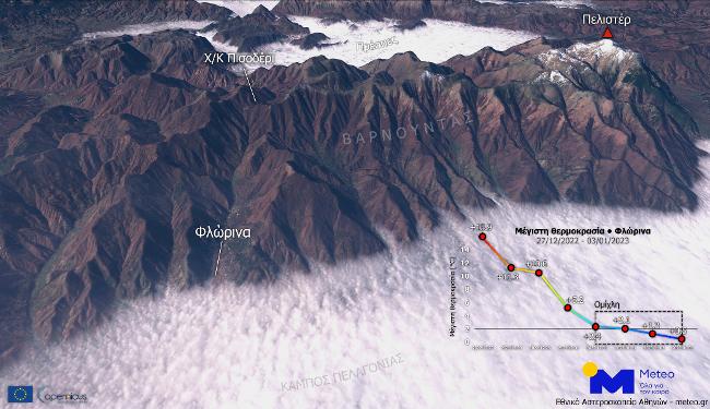 Όπως παρατηρούμε και στις παραπάνω δορυφορικές εικόνες που ελήφθησαν από το δορυφόρο Sentinel 2 του Ευρωπαϊκού Προγράμματος Copernicus και επεξεργάστηκε η μονάδα meteo του Ε.Α.Α, η ομίχλη εντοπίζεται στα πρώτα μερικά δεκάδες μέτρα πάνω από το έδαφος. Στη Φλώρινα τις τελευταίες 4 μέρες σύμφωνα με τον αυτόματο μετεωρολογικό σταθμό του Ε.Α.Α/meteo.gr η μέγιστη θερμοκρασία δεν ξεπέρασε τους +2,4°C λόγω της πυκνής ομίχλης, ενώ στο Νευροκόπι της Δράμας στις 30 & 31 Δεκεμβρίου 2022 η μέγιστη ημερήσια θερμοκρασία δεν ξεπέρασε τους +2,8°C.