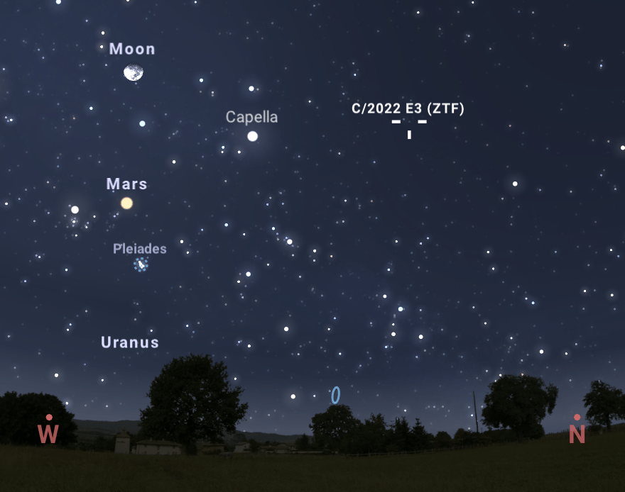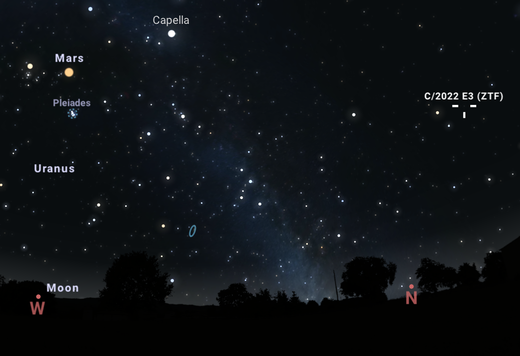 πηγή: https://stellarium-web.org/ – https://skyandtelescope.org/astronomy-news/spot-circumpolar-comet-ztf-c-2022-e3-in-binoculars/