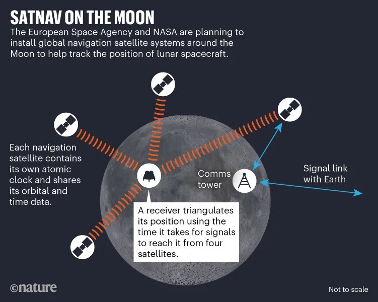 Η αρχή θα γίνει το 2024, όταν ESA και NASA θα προσπαθήσουν να προσδιορίσουν θέσεις στο φεγγάρι χρησιμοποιώντας αχνά σήματα δορυφορικής πλοήγησης από τη Γη. Σε επόμενο στάδιο, θα τεθούν σε τροχιά γύρω από τη Σελήνη δορυφόροι (ο καθένας με το δικό του ατομικό ρολόι υψίστης ακριβείας) για να υλοποιηθεί το GNSS, δηλαδή το σεληνιακό GPS. Για αρχή, η ESA σχεδιάζει τέσσερις δορυφόρους Moonlight που θα καλύψουν την πλοήγηση στον νότιο πόλο του φεγγαριού όπου υπάρχει πολύ νερό και αποτελεί σημαντικό στόχο εξερεύνησης.