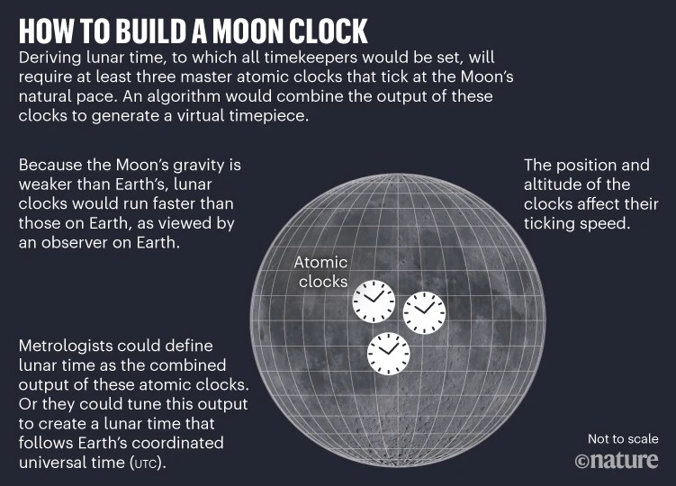 Με εντυπωσίασε η άποψη ότι τα διαφορετικά βαρυτικά πεδία γης-σελήνης θα μπορούν να επηρρεάσουν τη μέτρηση του χρόνου. Υποθέτω ότι τα όργανα μέτρησης δεν θα είναι ρολόγια …εκκρεμούς που πράγματι εξαρτώνται από το βαρυτικό πεδίο, αλλά ηλεκτρονικά μεγάλης ακρίβειας και μάλιστα Cs. Εκτός εάν λαμβάνονται υπόψιν άλλες παράμετροι όπως π.χ. οι θερμοκρασιακές μεταβολές.