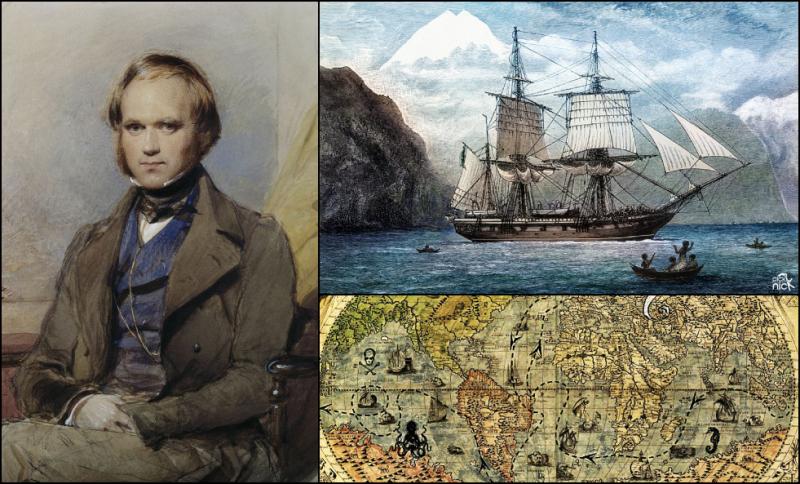 Επί πέντε σχεδόν χρόνια -από τις 27 Δεκεμβρίου 1836 μέχρι τις 2 Οκτωβρίου 1836- ο 22χρονος φυσιοδίφης θα κάνει τον γύρο του κόσμου με το «Μπιγκλ». Το «HMS Beagle» ήταν ένα εξερευνητικό ιστιοφόρο πλοίο του Βασιλικού Ναυτικού της Βρετανίας, είχε μήκος μόλις 27 μέτρα και φάρδος 8 μέτρα και το πλήρωμά του ήταν 74 ναυτικοί. Γεγονός που καθιστούσε πολύ δύσκολες τις συνθήκες συμβίωσης αλλά και τις υγειονομικές συνθήκες μιας αποστολής χαρτογράφησης και εξερεύνησης σε ανεξερεύνητα μέρη, που είχε προγραμματιστεί να διαρκέσει το πολύ τρία χρόνια, ενώ τελικά κράτησε σχεδόν πέντε χρόνια.