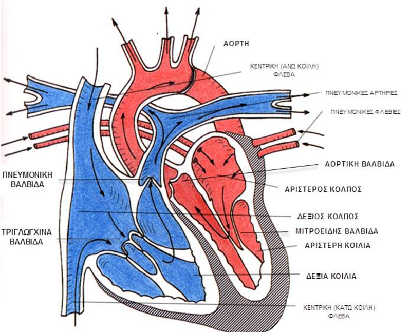 Υπενθυμίζεται ότι η καρδιά είναι μια φυσική αντλία που παίρνει το αίμα από τις φλέβες, στις οποίες βρίσκεται σε χαμηλή πίεση και το στέλνει στις αρτηρίες με υψηλή. Λειτουργεί αυτόματα και ακατάπαυστα καθ’ όλη τη διάρκεια της ζωής του οργανισμού. Διαθέτει δύο κοιλίες (αριστερή και δεξιά) και δύο κόλπους (αριστερό και δεξιό) που συγκοινωνούν μέσω βαλβίδων.