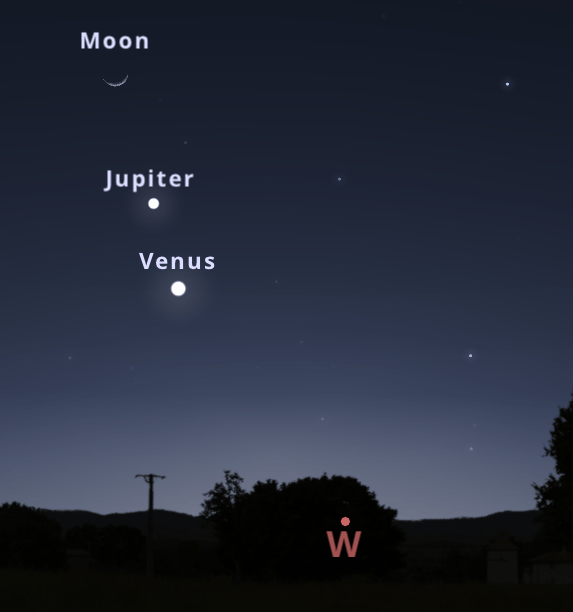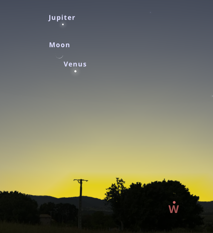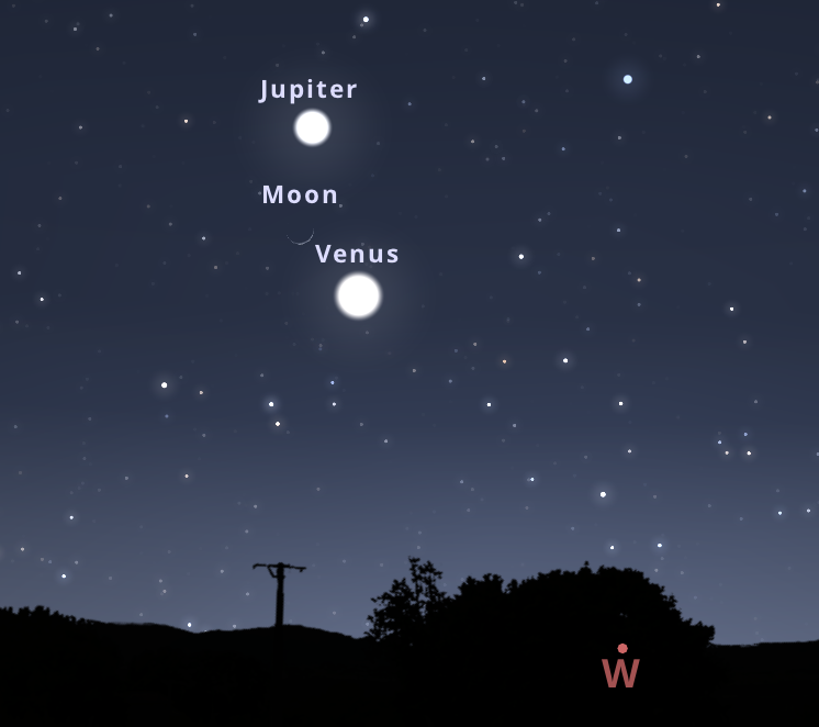 Αύριο την ίδια ώρα περίπου θα βρίσκεται ο Δίας ανάμεσα στη Σελήνη και την Αφροδίτη: