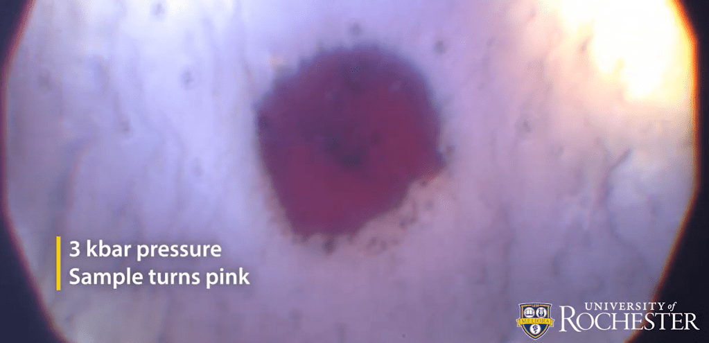 Σύμφωνα με τους ερευνητές η ένωση λουτεσίου-αζώτου-υδρογόνου ενώ αρχικά έχει ένα έντονο μπλε χρώμα, όταν στη συνέχεια συμπιέζεται, και μόλις αρχίζει η υπεραγωγιμότητα αλλάζει χρώμα από μπλε σε ροζ και στη συνέχεια προς έντονο κόκκινο σε μη υπεραγώγιμη μεταλλική κατάσταση.