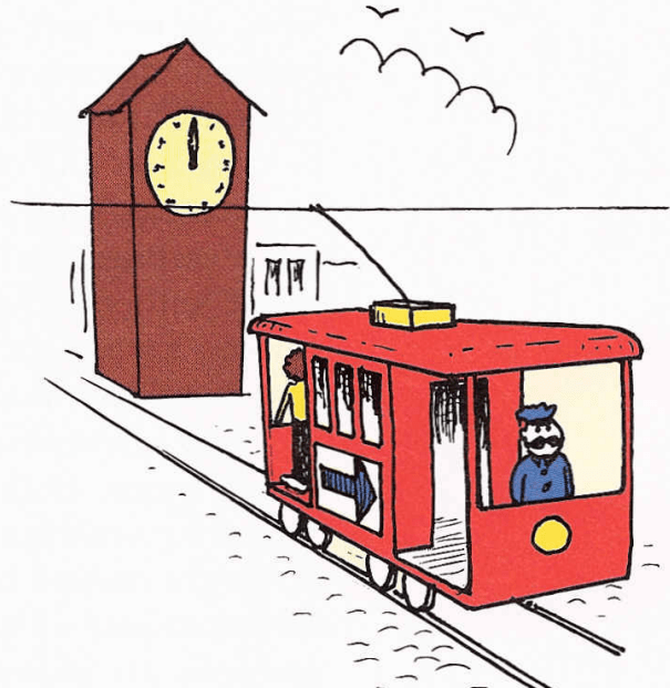 Yποθέστε ότι βρίσκεστε πάνω σε ένα τρόλεϊ που αρχικά είναι ακίνητο δίπλα στο μεγάλο ρολόϊ στην κεντρική πλατεία της πόλης. Βλέπετε ότι το ρολόι δείχνει 12 το μεσημέρι, όπως και οι θαμώνες της πλατείας.