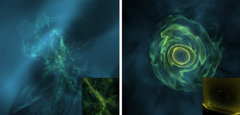 Η ερευνητική ομάδα με επικεφαλής τον Minghao Guo από το πανεπιστήμιο του Πρίνστον χρησιμοποίησε προσομοιώσεις δυναμικής ρευστών για να διερευνήσει πώς συσσωρεύεται το αέριο σε μια υπερμεγέθη μαύρη τρύπα στο κέντρο του τεράστιου ελλειπτικού γαλαξία Messier 87.