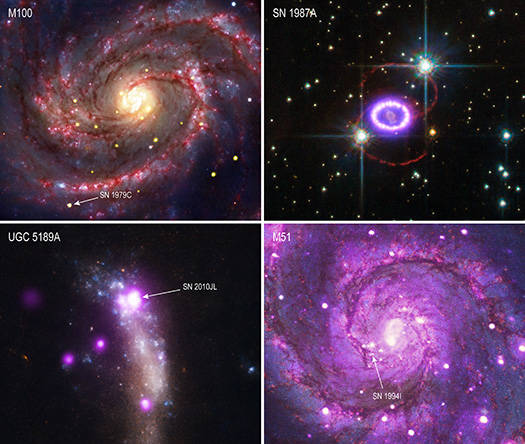 Τέσσερα από τα μακρινά σουπερνόβα που εξετάζει η μελέτη (NASA/CXC/Univ. of Illinois/I. Brunton et al.)