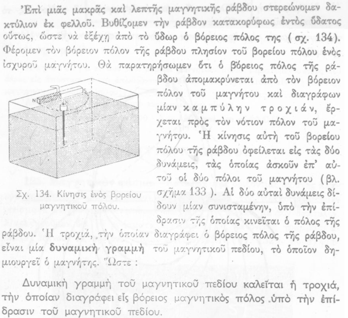 Πράγματι, ήταν λανθασμένη η γενίκευση του ωραίου πειράματος προς έναν απόλυτο ορισμό: «Δυναμική γραμμή του μαγνητικού πεδίου είναι η τροχιά που διαγράφει ένας βόρειος μαγνητικός πόλος…», η οποία μάλιστα επαναλαβανόταν και για τις αντίστοιχες ηλεκτρικές δυναμικές γραμμές.