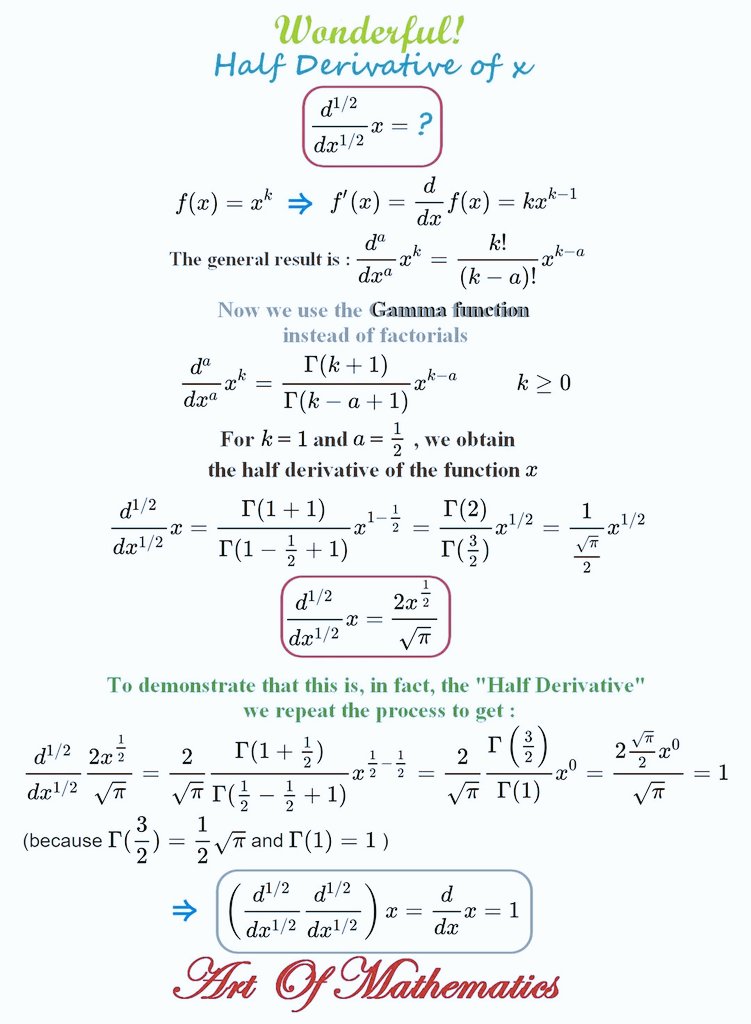 , θα έχουμε τελικά την ζητούμενη «μισή» παράγωγο της f(x)=x: