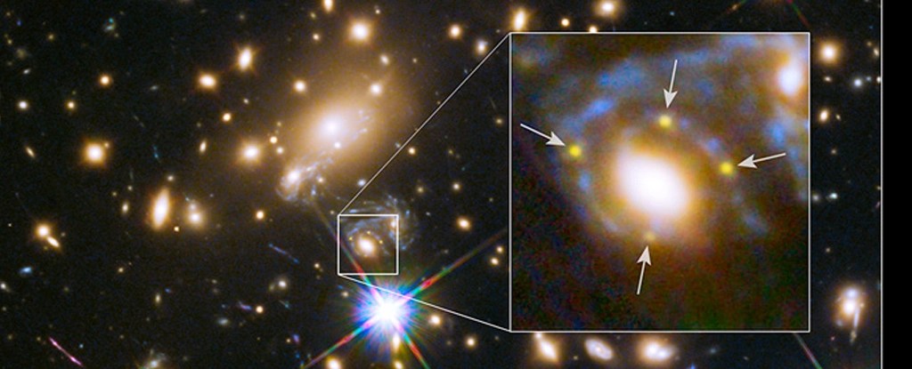 Το σουπερνόβα (η έκρηξη ενός γερασμένου άστρου που εξάντλησε τα πυρηνικά του καύσιμα και κατέρρευσε κάτω από το ίδιο του το βάρος) εμφανίστηκε σε τέσσερις διαφορετικές θέσεις λόγω ενός φαινομένου που προκύπτει από τη γενική θεωρία της σχετικότητας και ονομάζεται «βαρυτικός φακός».