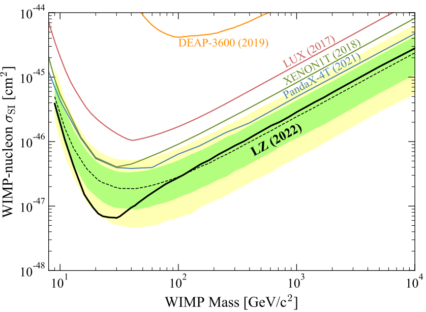 και το πείραμα LUX-ZEPLIN (LZ) την τιμή 6,5×10−48 cm2 για WIMP με μάζα 30 GeV/c2: