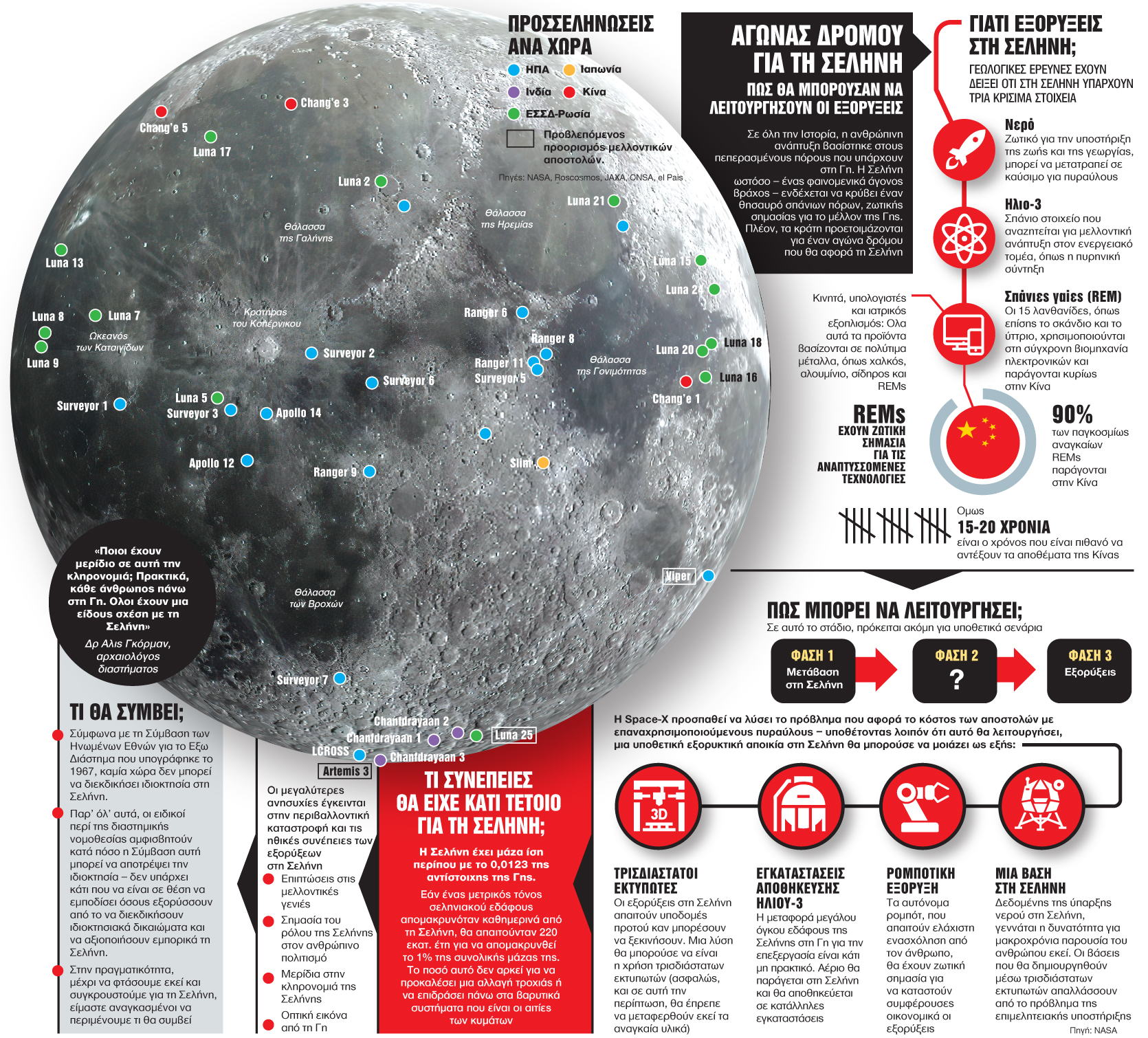 Ακόμη κι αν αυτό, όπως ήδη φοβούνται ορισμένοι, σημάνει έναν πόλεμο στο Διάστημα, με την εμπλοκή της Ρωσίας, των ΗΠΑ, της Κίνας και της Ινδίας, αλλά και της ΕΕ και της Ιαπωνίας. Οσο για την αιτία που οδηγεί τις εξελίξεις προς τη συγκεκριμένη κατεύθυνση, δεν είναι άλλη από τα πολύτιμα (και ενίοτε σπάνια) στοιχεία και συστατικά που φέρονται να είναι κρυμμένα εκεί.