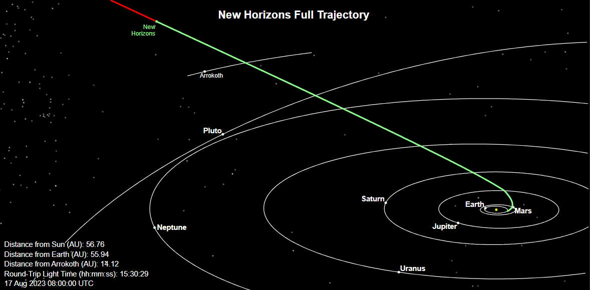 Πρόκειται για το New Horizons που πέρασε πολύ κοντά από τον Πλούτωνα το 2015 και στη συνέχεια από το αντικείμενο Arrokoth της Ζώνης Kuiper. Τώρα απέχει σχεδόν 57 αστρονομικές μονάδες(*) από τον Ήλιο και οι κάμερές του μπορούν ακόμα να συλλέξουν δεδομένα. Πρόσφατα η επιστημονική ομάδα που χειρίζεται το διαστημικό σκάφος New Horizons προσπάθησε να συλλάβει το ευάλωτο σκοτάδι του σύμπαντος. Στόχευσαν με την κάμερα των «Νέων Οριζόντων» σε ένα τμήμα του ουρανού μακριά από τον Γαλαξία μας, μακριά από τον Ήλιο και μακριά από φωτεινά άστρα. Και στη συνέχεια μέτρησαν το φως που συνέλλεξε η κάμερα.