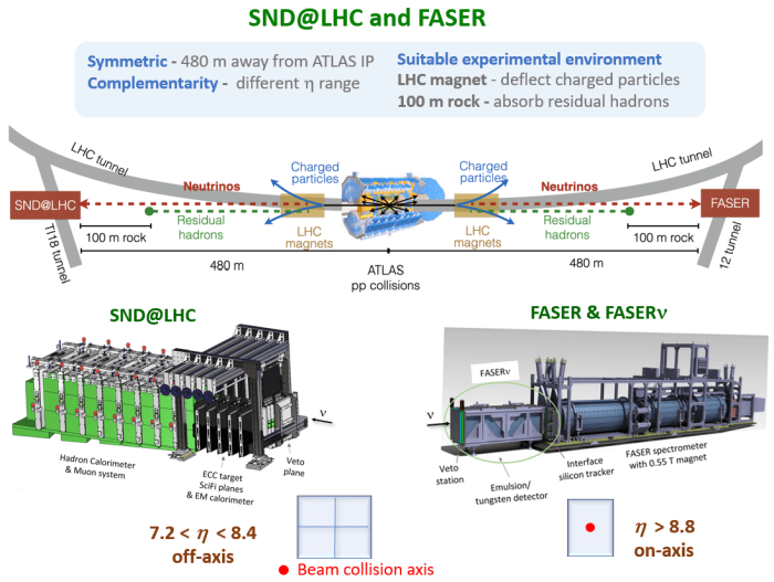 Τα πειράματα FASER και SND@LHC είναι δύο ξεχωριστές ερευνητικές προσπάθειες που χρησιμοποιούν τον Μεγάλο Επιταχυντή Αδρονίων (LHC) στο CERN. Πρόσφατα, αυτά τα δύο πειράματα παρατήρησαν ανεξάρτητα τα πρώτα νετρίνα που παράχθηκαν στον LHC, κάτι που θα ανοίξει νέους ορίζοντες στην πειραματική έρευνα της σωματιδιακής φυσικής.