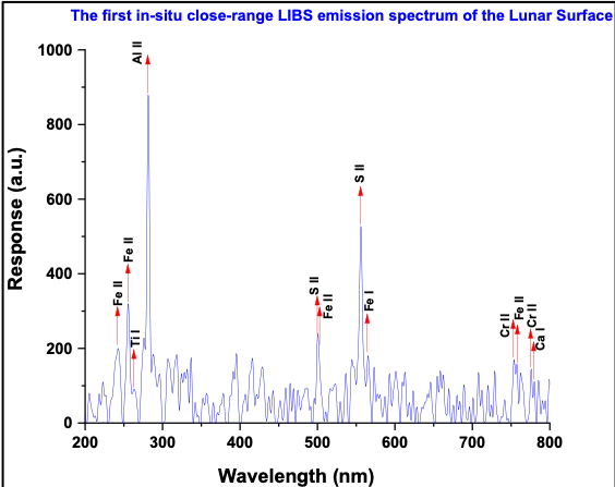 β) To διαστημικό ρόβερ Pragyaan έκανε τις πρώτες αναλύσεις του σεληνιακού εδάφους επιβεβαιώνοντας την παρουσία του στοιχείου θείου, όπως επίσης και την παρουσία αλουμινίου, ασβεστίου, σιδήρου, χρωμίου, τιτανίου, μαγγανίου, πυριτίου και οξυγόνου. Η ύπαρξη του θείου στο σεληνιακό έδαφος ήταν γνωστή από την δεκαετία του 1970 – από τα δείγματα των αποστολών Απόλλων και Luna. Όμως η επιτόπου ανάλυση του Pragyaan είναι ένα τεράστιο επίτευγμα: