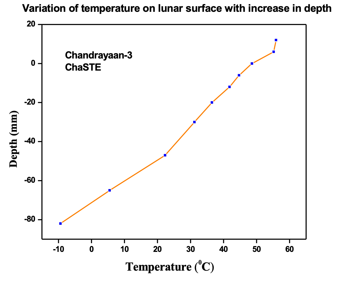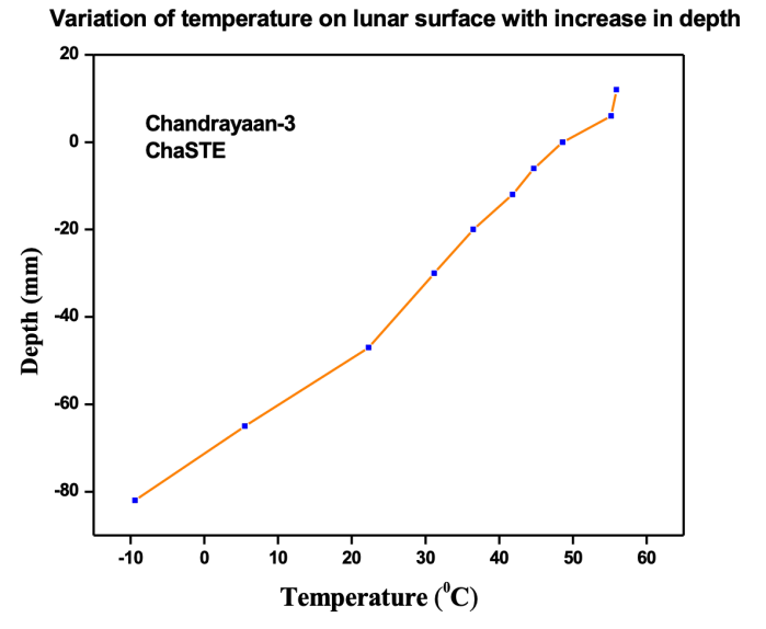 α) Μέτρησε την θερμοκρασία κοντά στο νότιο πόλο της Σελήνης για πρώτη φορά φορά μέχρι το βάθος των 10 εκατοστών κάτω από το έδαφος από έναν ανιχνευτή που βρίσκεται στο σκάφος προσεδάφισης Vikram: