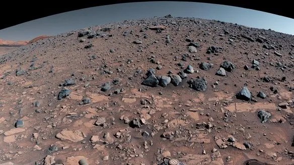 Το διαστημικό όχημα της NASA Curiosity κατέγραψε ένα πανόραμα 360o όταν βρίσκονταν κάτω από την κορυφογραμμή Gediz Vallis. Bλέπουμε το αποτέλεσμα βίαιων ροών συντριμμιών, τα οποία αργότερα διαβρώθηκαν από τον άνεμο δημιουργώντας έναν επιβλητικό σχηματισμό. Αυτό συνέβη πριν από περίπου 3 δισεκατομμύρια χρόνια, όταν υπήρχαν τεράστιες ποσότητες νερού σ’ αυτό το μέρος του Κόκκινου Πλανήτη.
