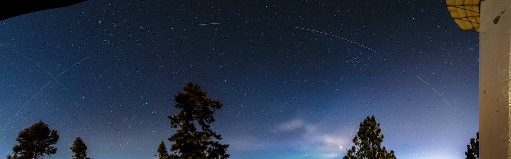 Οι διαδρομές του δορυφόρου BlueWalker 3 στον νυχτερινό ουρανό πάνω από το Εθνικό Αστεροσκοπείο στο San Pedro Mártir (Μεξικό), στις 12 Νοεμβρίου 2022