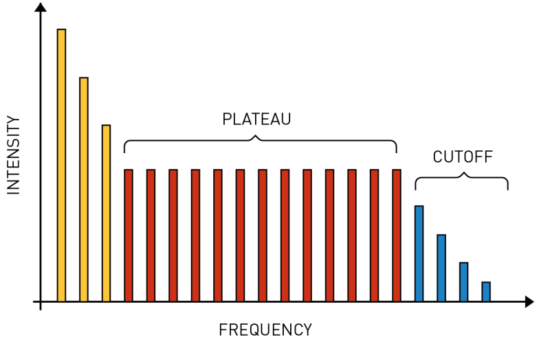 Αυτή δεν ήταν η πρώτη παρατήρηση παραγωγής υψηλών αρμονικών (Ηigh-Ηarmonic Generation: HHG), αλλά ήταν η πρώτη για την οποία παρατηρήθηκε ένα πολύ καθαρό πλατώ. Το ερώτημα παρέμενε για το ποια φυσική διαδικασία ήταν υπεύθυνη για το σχηματισμό του πλατώ και πώς θα μπορούσε να αξιοποιηθεί. Το σχήμα 1 δείχνει γενικά την ένταση εκπομπής ως συνάρτηση της συχνότητας υψηλών αρμονικών (HHG).